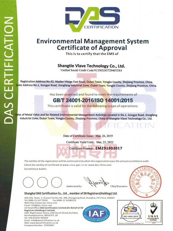環(huán)境管理體系認(rèn)證證書(英文版)